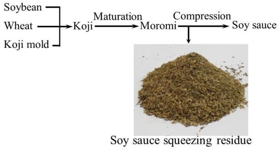 Large amounts of SSSR are produced when moromi (unrefined soy sauce) is compressed to extract the raw soy sauce. SSSR is plate-shaped when produced, but is later finely ground for storage and processing (Figure 1). Fishmeal refers to the crushed powder obtained by boiling residual fish substances during the removal of water and oil from the residue, with subsequent pressing, and eventually drying of the remaining solid with hot air or steam (Figure 2).