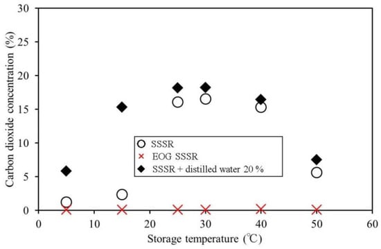 Under the conditions used in this study, carbon dioxide accounts for the majority of gas produced during SSSR and fishmeal storage. Aside from carbon dioxide, small amounts of flammable gases, such as carbon monoxide and hydrogen, were also detected from fishmeal. Furthermore, more carbon dioxide was produced when moisture was added to both materials. The amount of carbon dioxide produced increased as the temperature increased in the 5–30 °C range; however, at temperatures above 30 °C, carbon dioxide production was observed to gradually decrease with increasing temperature.