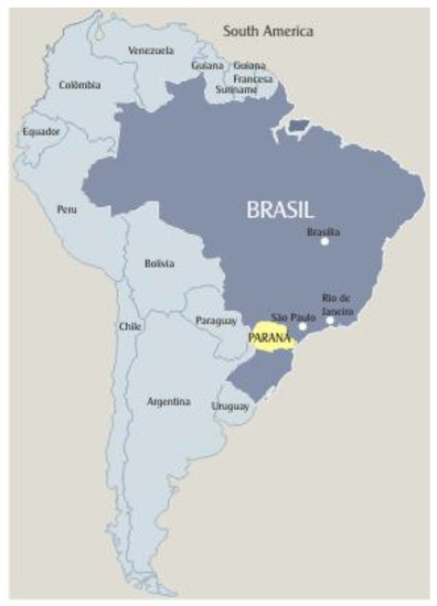 Location of Paraná State in the Brazil map [4].