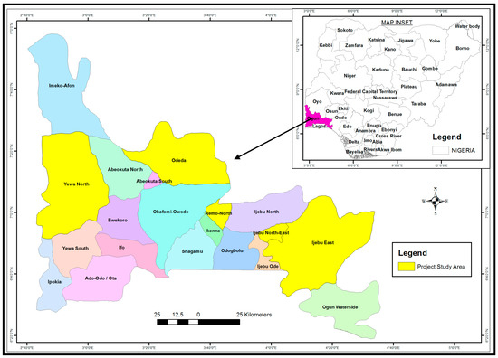 Map of Ogun State showing the study areas in yellow.