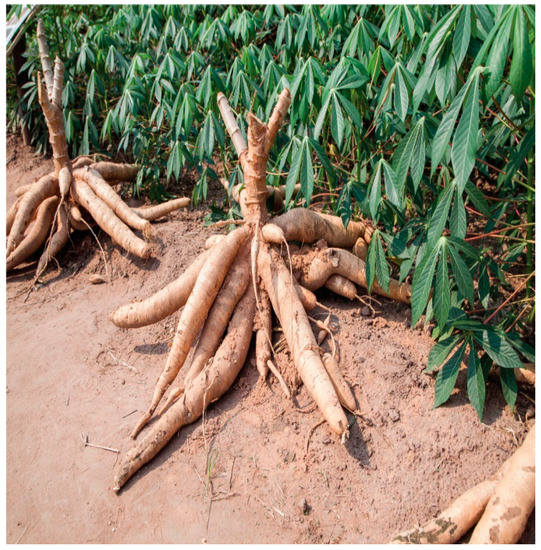 - Tonukari, N.J.; Ezedom, T.; Enuma, C.C.; Sakpa, S.O.; Avwioroko, O.J.; Eraga, L.; Odiyoma, E. White Gold: Cassava as an Industrial Base. Am. J. Plant Sci. 2015, 6, 972–979. [Google Scholar] [CrossRef]