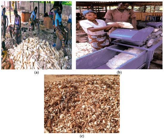 Globally, 60% of the cassava produced is mostly used for consumption in numerous forms by humans, while the animal food industry uses about 33% of the world production. The remaining 7% is used by industries to produce products such as textiles, paper, organic acids, flavor and aroma compounds, and cassava bagasse [5]. Three main types of residues are generated during the industrial processing of cassava: peels, solids, and wastewater. These wastes are poor in protein content, but their residues are very rich in carbohydrate and are generated in large amounts during the production of ‘garri’ and cassava flour from the tubers. The cost associated with the handling and disposal of these wastes constitutes a huge financial burden to the cassava-processing industries in most rural regions of the country. As a result of this challenge, most rural cassava processors choose to dispose the cassava-processing wastes generated into the environment. These wastes have been identified to be toxic to the environment [2,4,6].