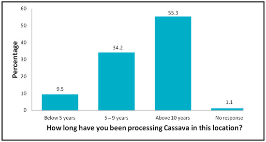 Number of years respondents have worked in cassava processing.