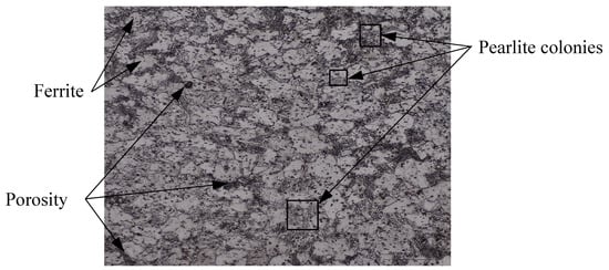 In-situ reduction of grinding sludge took place in GSGR75 samples by carbothermic reduction of iron oxide during sintering of MIM parts. The carbon is sourced from pyrolytically generated carbon and externally added graphite in 25% excess for carbothermic reduction. The trend of increasing sintered properties of GSGR75 parts with DOR is similar to that of GSGR, as shown in Figure 2. However, the correlation between sintered properties and DOR is weak in MIM-based GSGR75 parts, as compared to PM based GSGR. The weak correlation is because of the heterogeneous distribution of graphite in grinding sludge (arises from low solid loading in GGS75 i.e., 75 wt. %) limits the carbothermic reduction, densification, and properties of sintered parts. Figure 3 shows micrographs of sintered GSGR at 1200 °C and argon gas atmosphere. Grain boundaries of free ferrite, pearlite colonies (laminar structure of ferrite-cementite phases), and pores are clearly visible.
