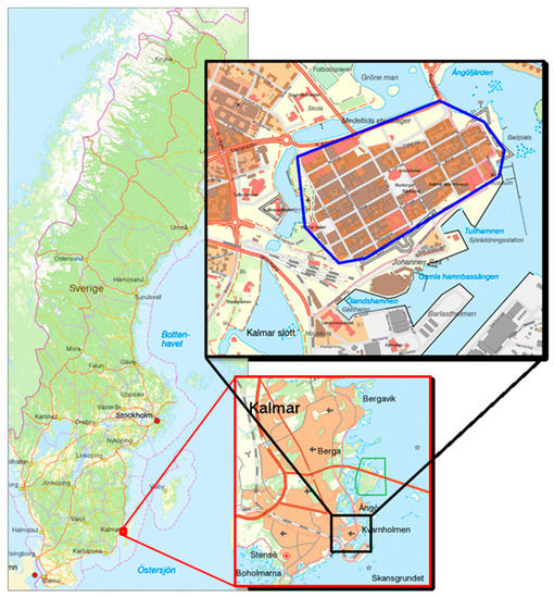 The study area Kvarnholmen in the city of Kalmar, in the southeast of Sweden.