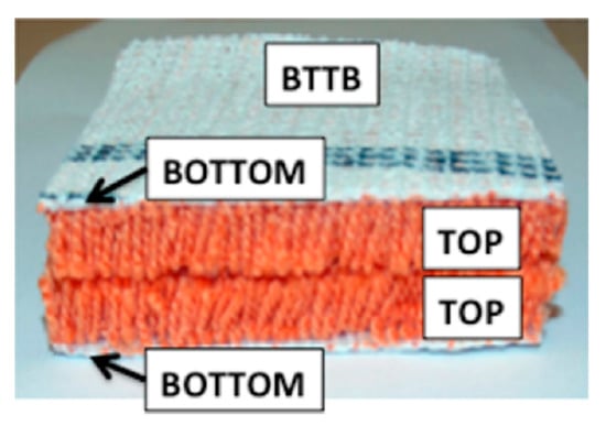 For this study, only BTTB (bottom-top-top-bottom) configurations have been used as shown in Figure 1. The following three different types of carpet composites were fabricated for this study: (a) neat epoxy carpet composite, (b) clay-coated carpet composite, and (c) clay-infused carpet composite.
