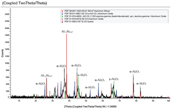 According to Scanmetals specification sheet, the estimated yield for ingot casting for the DRYINC© LION +10 mm is 82%–84%. Due to the size limitation of melting process used at BCAST and the high levels of dross generated, the yield of the lion material was about 68% which is 14%–16% lower compared with that achieved by Milver using their furnace with EMP (electromagnetic pump) technology. The composition achieved of the BA-6111 has higher silicon and iron level than ideal for the AA-6111 alloy as shown in Table 1. The chemical composition of the dross collected from the bottom ash melt was mainly aluminium and silicon oxides, as shown in Figure 3.