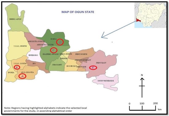 Five Local Government Areas within Ogun State were selected for this study, and the bases of selection were on population, landmass, and spatial location. The Local Governments selected were as follows.