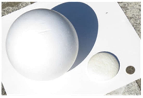 Figure 3. Reduction in the volume of styrofoam (original diameter, 200 mm) and a Japanese 500 yen coin (image provided by Kawahara).