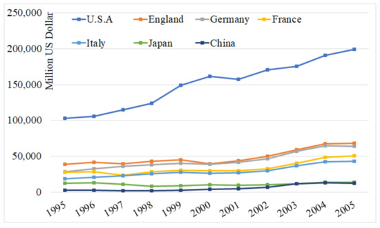 Vehicle import value of each country from 1995 to 2005 [17].