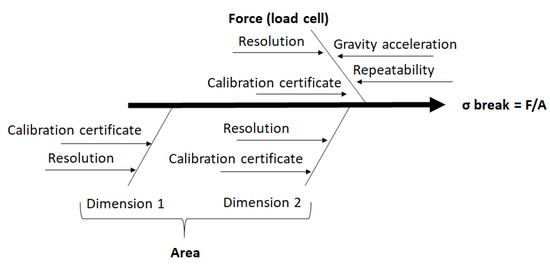 The sources of quantifiable uncertainty are presented in the Ishikawa diagram, as shown in Figure 4. The other possible components of uncertainty are considered non-quantifiable or do not influence the measure.