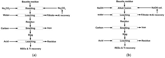 - Borra, C.R.; Blanpain, B.; Pontikes, Y.; Binnemans, K.; Van Gerven, T. Recovery of Rare Earths and Major Metals from Bauxite Residue (Red Mud) by Alkali Roasting, Smelting, and Leaching. J. Sustain. Metall. 2016, 3, 393–404. [Google Scholar] [CrossRef]
