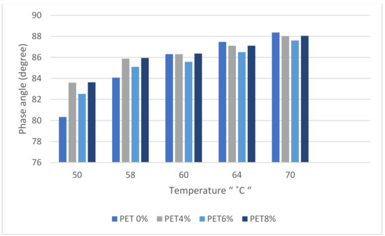 Phase angle results of PET-modified binders after RTFOT.