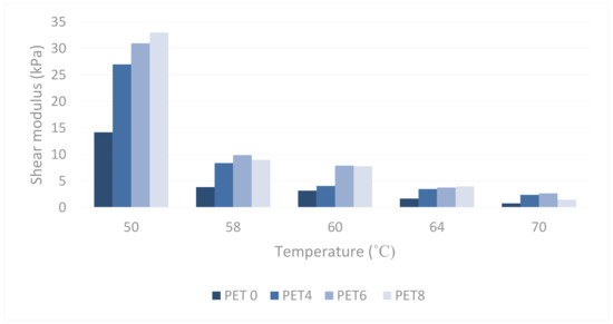 - According to the DSR results, samples of PET-modified asphalt indicate better performance in term of decreasing the asphalt’s susceptibility to deformation at high temperatures, which would result in better rutting resistance. The complex shear modulus was increased and values of the phase angle reduced due to addition of PET to the binder. At the testing temperatures of 50–70 °C, a better rutting resistance was achieved which can be attributed to the elasticity of materials.