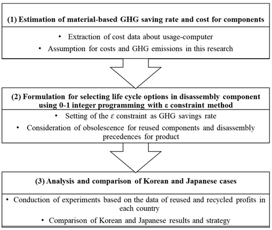- The proposed Korean and Japanese analysis enables us to evaluate reusing components in EOL products environmentally-friendly and economically instead of using new raw materials. These can contribute to sustainable consumption and production in one of the goals of the Sustainable Development Goals (SDGs) and reduce waste. This study also shows the difference between the two countries, rather than the life cycle option of products in one country in view of globality. Through this study, effects of environmentally-friendly and economically factors are described for managers who prioritize environmental or economic factors to managers’ goals considering the global environment.