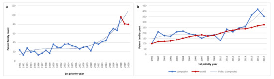 - Campbell, R.S. Patent trends as a technological forecasting tool. World Pat. Inf. 1983, 5, 137–143. [Google Scholar] [CrossRef]