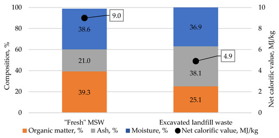 The properties of excavated landfill waste were compared with thermal properties of “fresh” MSW of the city of Perm (Figure 9).