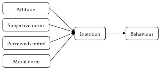 - Godin, G.; Conner, M.; Sheeran, P. Bridging the intention–behaviour gap: The role of moral norm. Br. J. Soc. Psychol. 2005, 44, 497–512. [Google Scholar] [CrossRef]