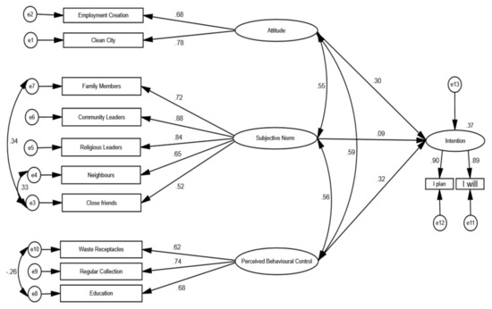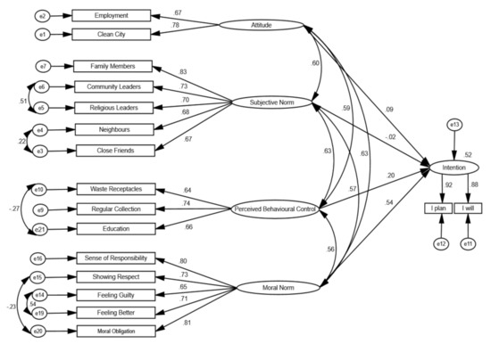 - Heidari, A.; Kolahi, M.; Behravesh, N.; Ghorbanyon, M.; Ehsanmansh, F.; Hashemolhosini, N.; Zanganeh, F. Youth and sustainable waste management: A SEM approach and extended theory of planned behavior. J. Mater. Cycles Waste Manag. 2018, 20, 2041–2053. [Google Scholar] [CrossRef]