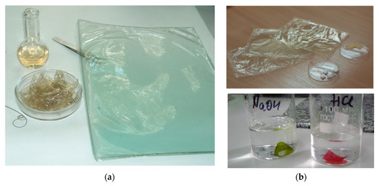 Films based on chitosan: (a) experimental sample of the film made from chitosan; (b) smart film (Open source photos) [51].