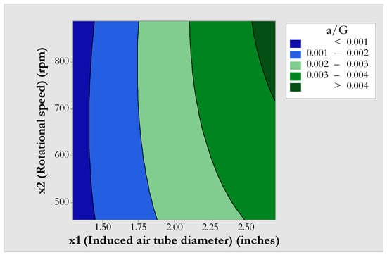 The contour plot of a/G as a function of the induced air tube diameter and rotational speed was used to demonstrate the optimal conditions that produce the suitable a/G (Figure 3).