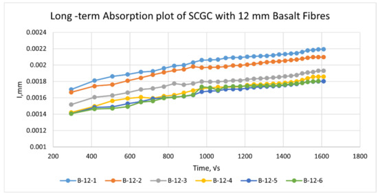 Long-term absorption plot of SCGC with 12 mm basalt fibres.