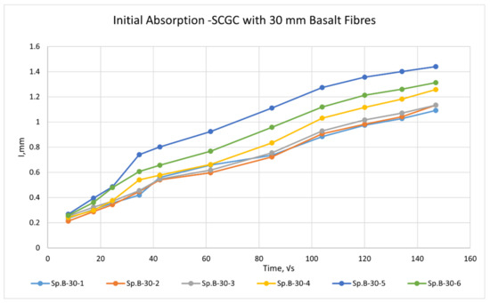 Initial absorption plot of SCGC with 30 mm basalt fibres.