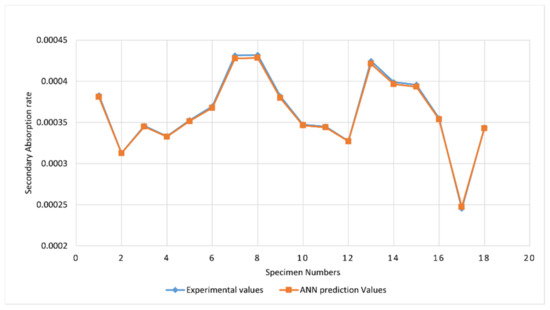 ANN vs. experimental—secondary absorption rate of test specimens.