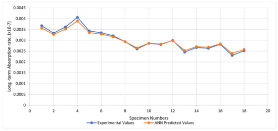 ANN vs. experimental—long-term absorption rate of test specimens.