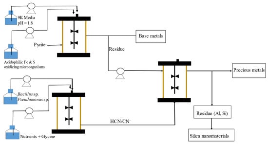 Another challenge associated with the proposed process is how cyanide would be managed. Since cyanide is a toxic compound, the residual cyanide including its complexes needs to be remediated after the extraction process. This can be achieved by utilising the cyanide producing organisms Bacillus sp. [67,68] and Pseudomonas sp. [69,70] for the bioremediation of cyanide. These organisms have been previously shown to be effective cyanide degraders and, hence, they can be utilised in a separate process where the cyanide-containing wastewater would be remediated.