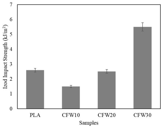 - The mechanical testing showed that CFW could improve the tensile modulus, flexural strength, and Izod impact strength of PLA. The above mechanical properties of the composites also increased with an increase in the CFW content.
