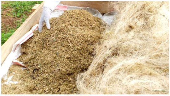 The sisal fiber, which is produced during the decorticating process, accounts for only 3 to 6% of the total weight, with the remainder being waste [4,5]. This huge amount of generated sisal waste (about 94 to 97%) should be effectively managed as resource recovery in attempt to avoid the negative effects that it has on the environment, including soil and underground water pollution [6,7]. Various studies show that sisal decorticated waste is used in biogas production [8,9,10], mushroom cultivation [5,11] as animal feed [12,13], and it goes further in the fattening of goats and sheep [14,15]. However, in all reported studies, SDW needs to be pre-treated for better results [16,17].