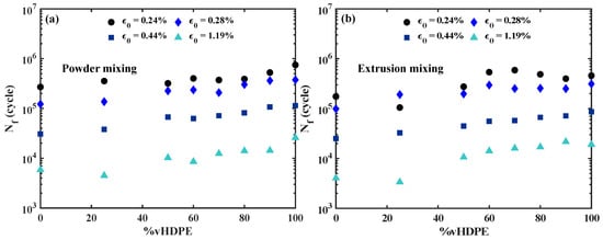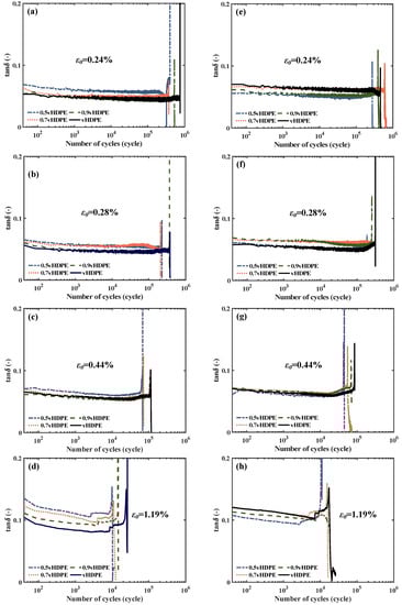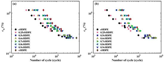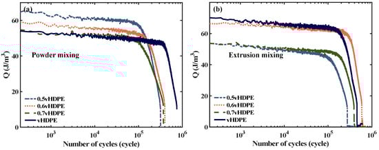 - Zhang, J.; Hirschberg, V.; Rodrigue, D. Mechanical Fatigue of Recycled and Virgin High-/Low-density Polyethylene. J. Appl. Polym. Sci. 2022, 140, e53312. [Google Scholar] [CrossRef]