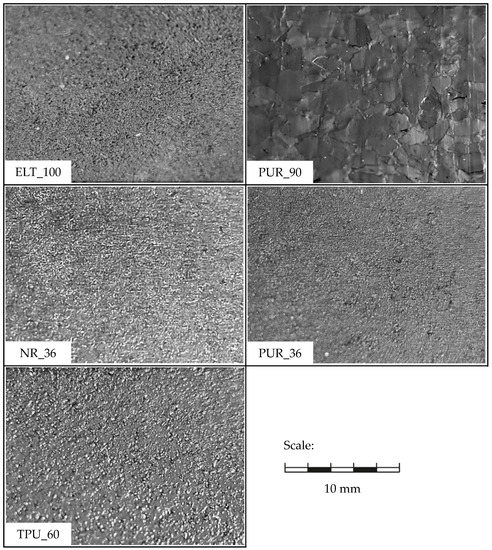 The sample PUR_90 corresponds to a typical ELT product as used e.g., as impact protection or anti-slip mat and is containing relatively coarse ELT granulates.