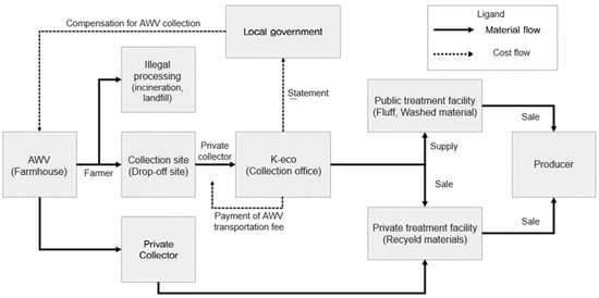 In the European case, it was found that a collection system was secured and managed by the EPR system for the responsible recycling of AWV. In Japan, AWV is classified as industrial waste. According to the PPP, farmers are required to bear the cost of collection and treatment. Local governments and producers bear the cost together. Farmers must remove foreign substances in the discharge stage, roll them into a certain size, and discharge them. The proposed model in this study covers both the EU’s EPR and Japan’s responsible discharge and can contribute to the establishment of the AWV circulation system.
