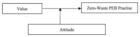 Some earlier research has proven the positive relationship between attitudes and behaviours. According to Kollmuss and Agyeman [27], individuals could only develop positive environmental behaviours by altering their value, intrinsic motivation, and relevant attitude. Pe’er, Goldman, and Yavetz [64] showed in their study that attitudes can positively influence environmental behaviour. In a recent study by Liu, Teng, and Han [65], attitudes have been discovered to have a considerable impact on PEB. Many research models have shown that individuals must first improve their attitudes towards the environment before they can change their behaviours towards the environment. Attitudes are believed to shape zero-waste PEB practises on university campuses.