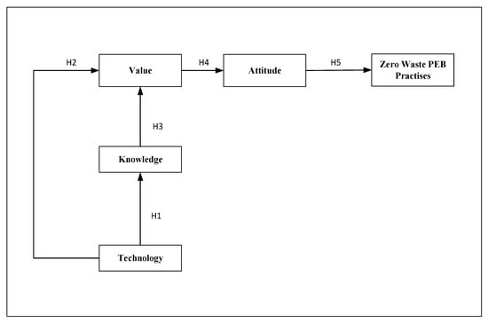Current generations are overwhelmed with many kinds of information. However, despite the known knowledge, the waste issue is getting more critical by the day. What does it take for one to practise sustainable, zero-waste, pro-environmental behaviour? Does technology, particularly information technology, aid in the management of waste in a sustainable manner? With the advancement of technology in the modern century, it is critical to find the relationship between knowledge, attitude, value, and technology in fostering sustainable zero-waste PEB practises. Figure 8 shows the research framework for this study.