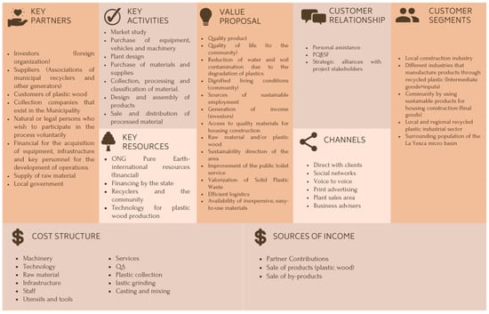 Market recognition is carried out though the demand and supply of the sector for the recovery of waste based on the Canvas methodology shown in Figure 5, identifying the description of the company’s value, form of commercialization, initial capital and capacity of determine the profitable income streams of the company. It is determined that plastic wood represents a novel and ecological option allowing the use of recyclable materials due to the low level of degradation and resistance to high climatic conditions.