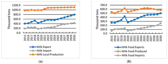 (a) Milk import, export, and local production; (b) Milk food import, export, and local production.
