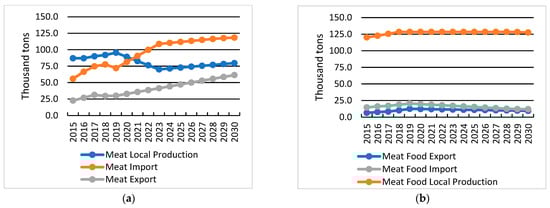 (a) Meat Import, Export, and Local Production; (b) Meat Food import, export, and local production.