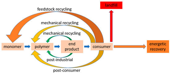 Figure 1). Post-consumer waste is generated by the end consumer, while post-industrial waste is generated during production. Recovery is a generic term and describes all ways of recovering plastic waste. Recycling is a sub-term and describes all options of material reuse and resource recycling.