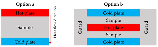 Measurement methods of thermal transmittance of insulating materials. (a) HMF—heat flow meter; (b) GHP—guard hot plate. Source—[20].