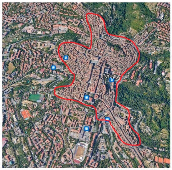 These factors are quite challenging if applied to CBs for more than one reason. First of all, the actual weight of CBs that can be potentially collected is much lower than any other sorted waste type, affecting the economic sustainability of a dedicated collection route. It is also difficult to evaluate and identify the urban areas where CBs are largely produced to optimize the installation of disposal infrastructure and the consequent collection route. Probably, public spaces like historical city centers, parks, and sidewalks could be considered as strategic areas for the production of smoke product waste. In such areas, cigarette bins should be located to encourage its disposal. In fact, CBs are easily dispersed in the environment mainly because of the lack of public awareness and the absence of designated smoking areas and public spaces with cigarette disposal infrastructure. To better comprehend these aspects, an analysis of a specific case study was carried out: the cigarette waste production in the historical city center of Perugia, Central Italy (Figure 2).