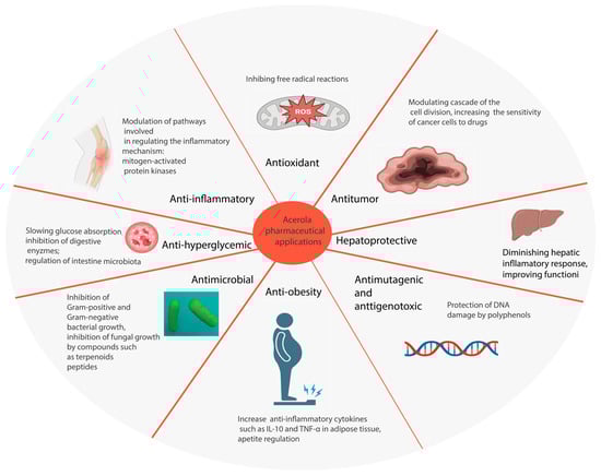 Pharmaceutical application of acerola (created with BioRender.com by the authors).