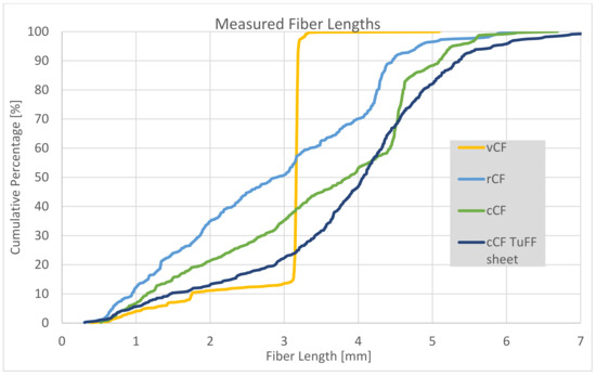 Fiber length distributions of vCF, rCF, cCF, and cCF in TuFF sheet.