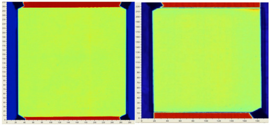 Ultrasonic evaluation of vCF (left) and cCF (right) panels show consistent panel quality.