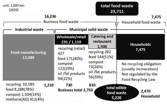 - Liu, C.; Hotta, Y.; Santo, A.; Hengesbaugh, M.; Watabe, A.; Totoki, Y.; Allen, D.; Bengtsson, M. Food waste in Japan: Trends, current practices and key challenges. J. Clean. Prod. 2016, 133, 557–564. [Google Scholar] [CrossRef]