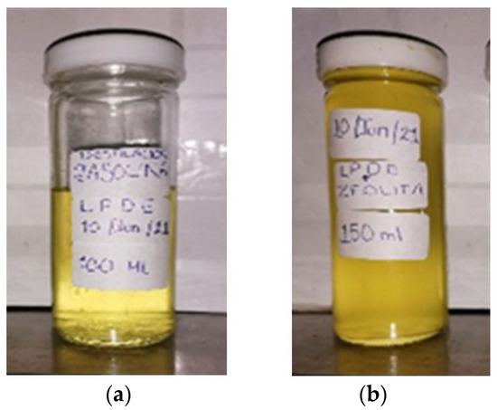 In the product distillation process of the oil obtained by traditional pyrolysis, 20% of the liquid fuel was obtained. The distillation started at 40 °C and ended at 130 °C. In the process of distilling the oil obtained from catalysis of the LDPE + zeolite, 30% of the liquid fuel was obtained. The distillation process started at 60 °C and ended at 150 °C.