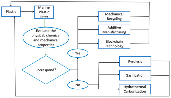 A schematic diagram of technologies for recycling of marine plastic litter is illustrated in Figure 1.