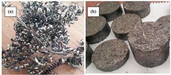 (a) The Ti6Al4V chip, and (b) the briquettes pressed from their chip [].